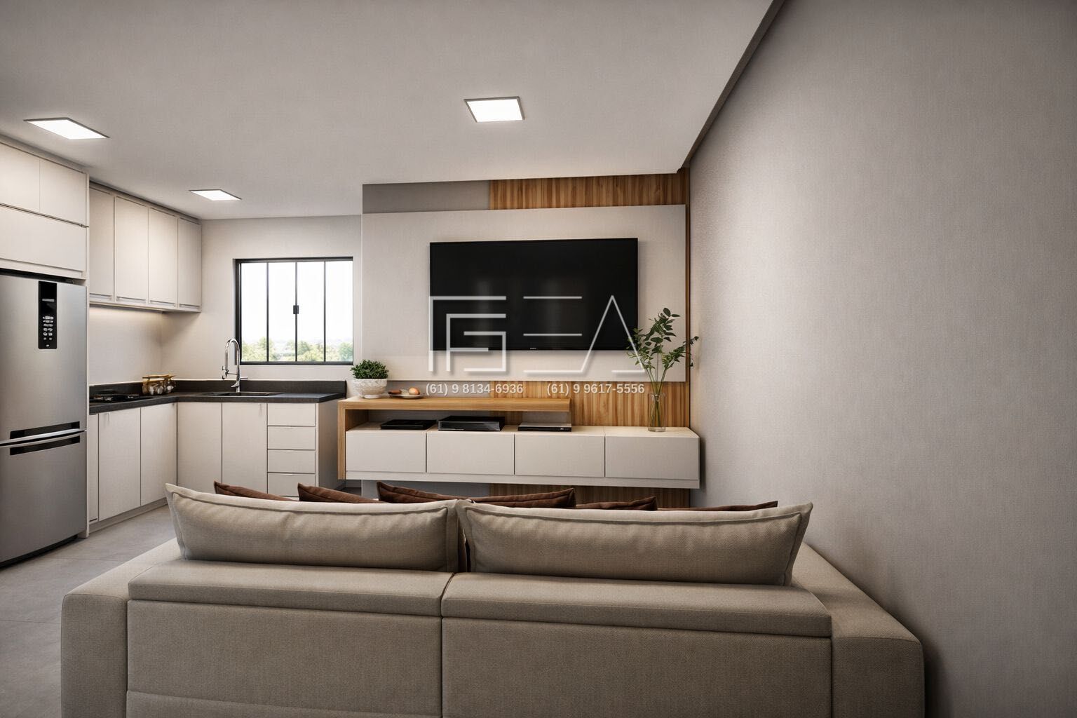 2 Dormitórios, sendo 1 suíte1 Banheiro1 Vaga1 Sala de TV1 Cozinha1 Área de serviço