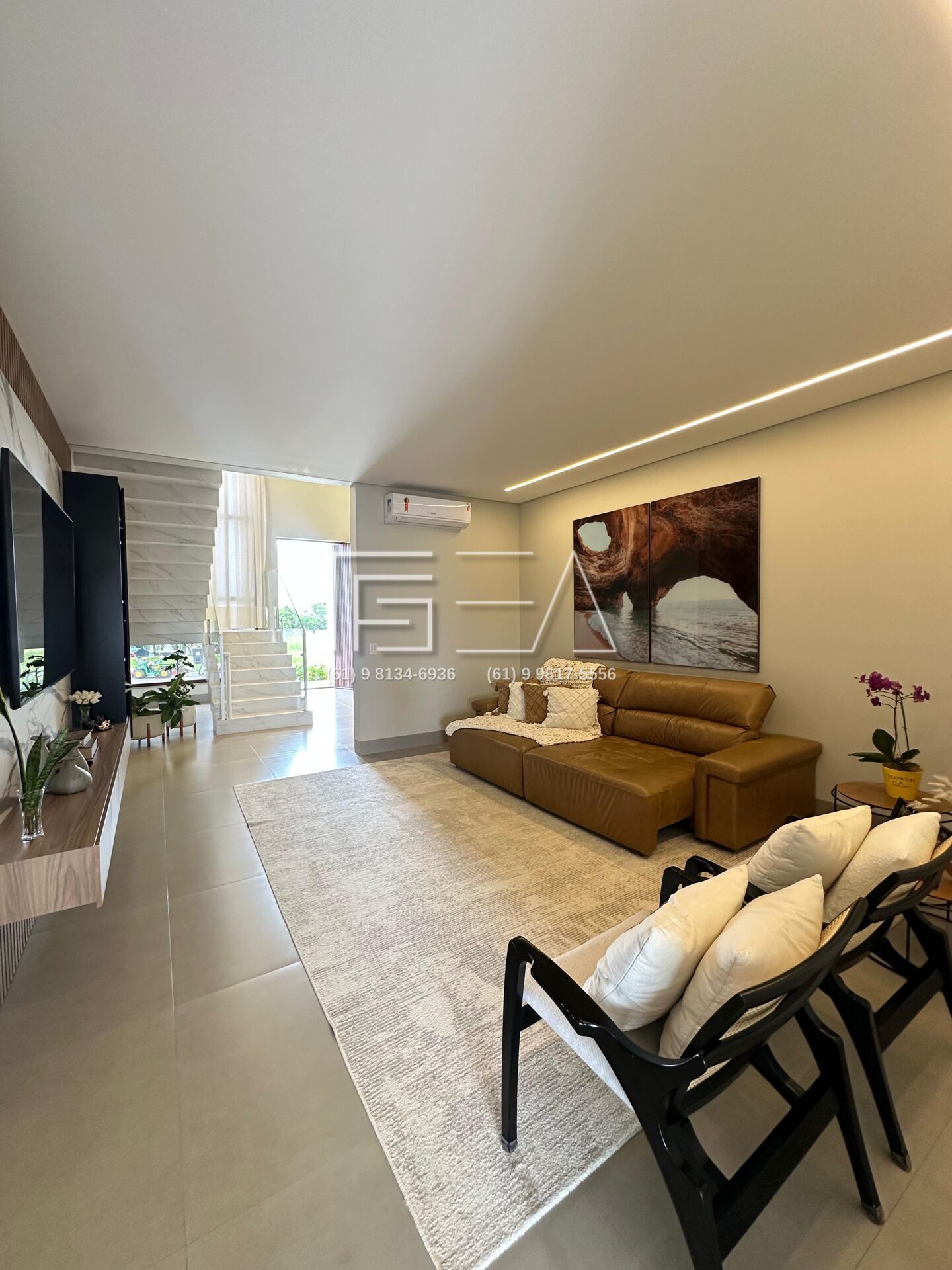 - Cortinas instaladas na sala, escada e suíte.